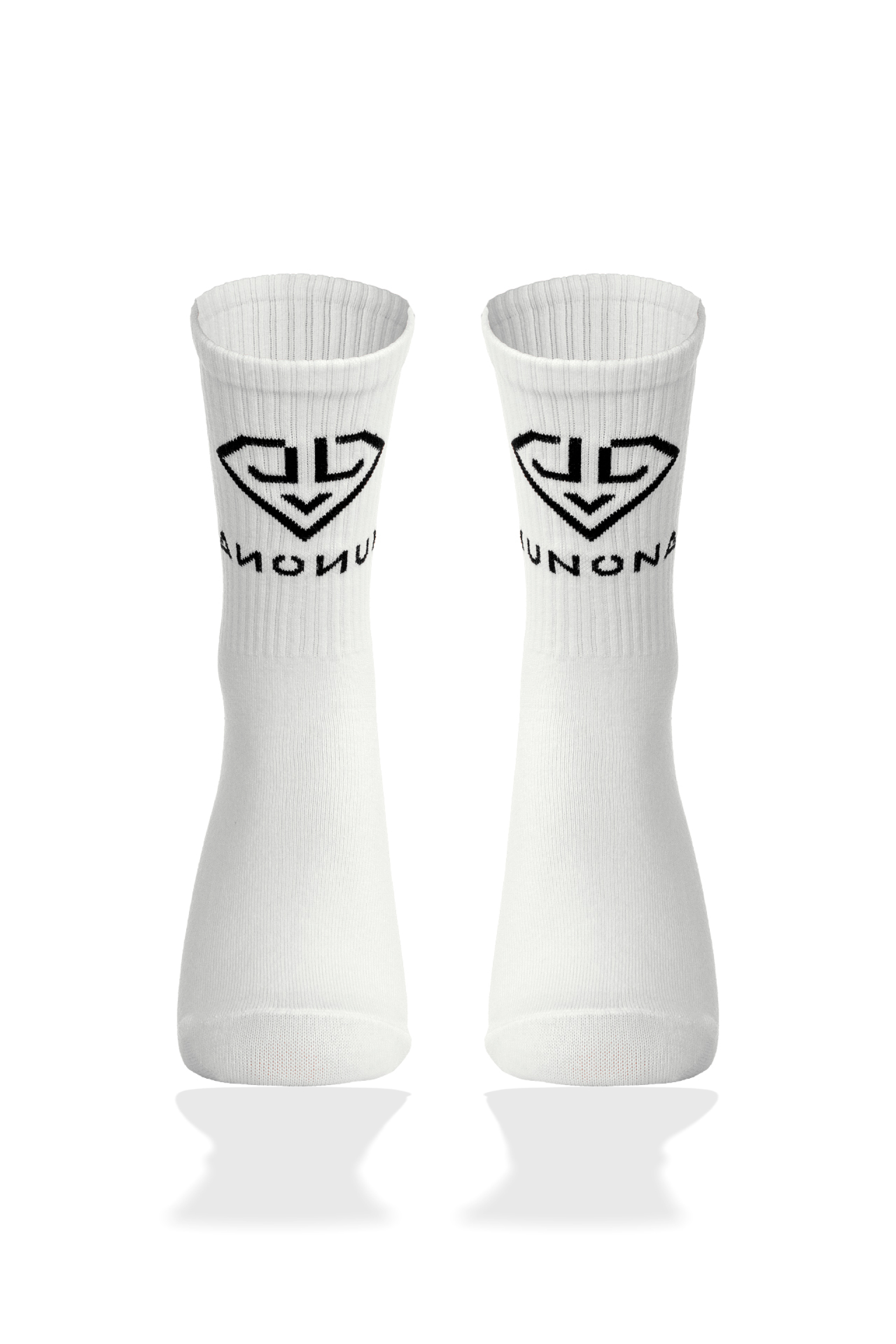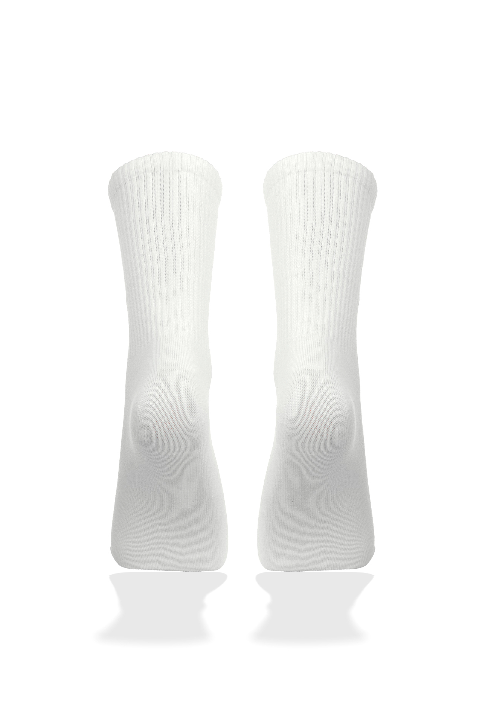 Описание: Бели, високи чорапи с лого и надпис на глезена в предната част. Изработени от мека и еластична материя, което им придава удобство и устойчивост, те стигат малко над глезена, като горната част е подсилена с рипсен ластик за по-добро прилепване.