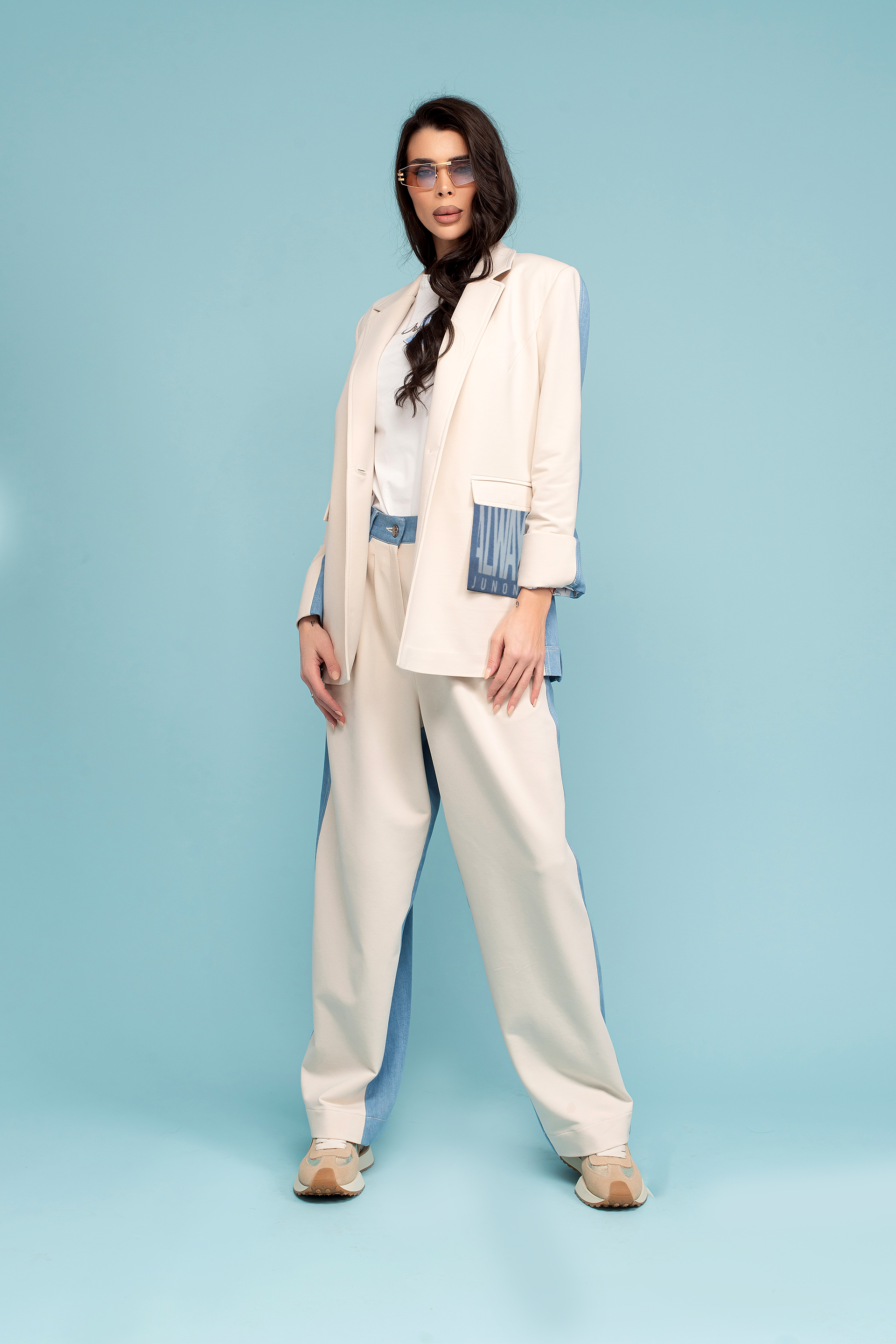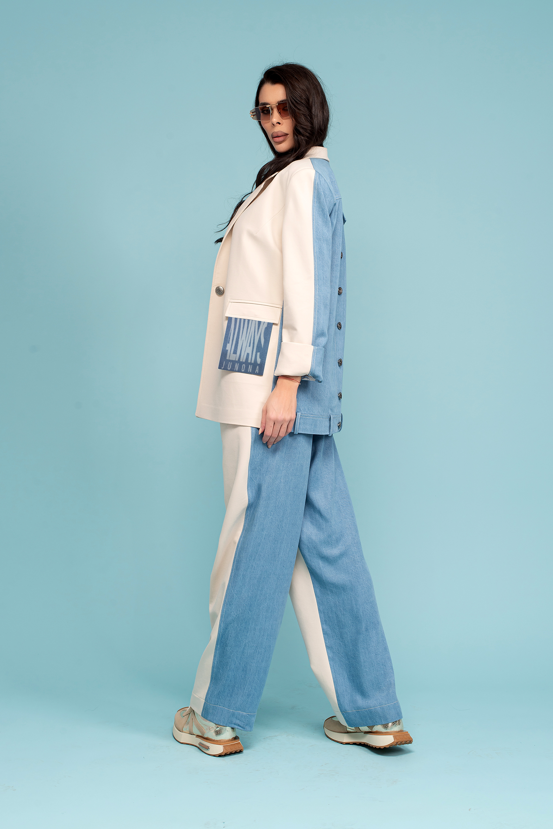 Описание: Сако със свободен силует с яка с ревери и дълъг ръкав. Артикулът е с предни джобове с капаче и закопчаване с копчета отпред. Акцент копчета на гърба.