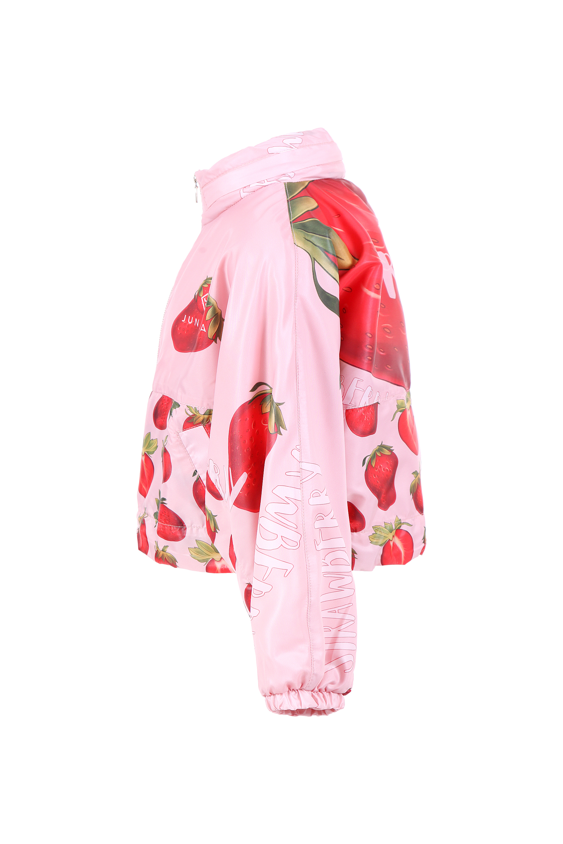 Описание: Красиво детско оversize яке тип ветровка с принт ягоди, изработено е от много лек и издръжлив плат. Има качулка, която се прибира в яката и лого Юнона. Съчетава се с артикули от същата серия.