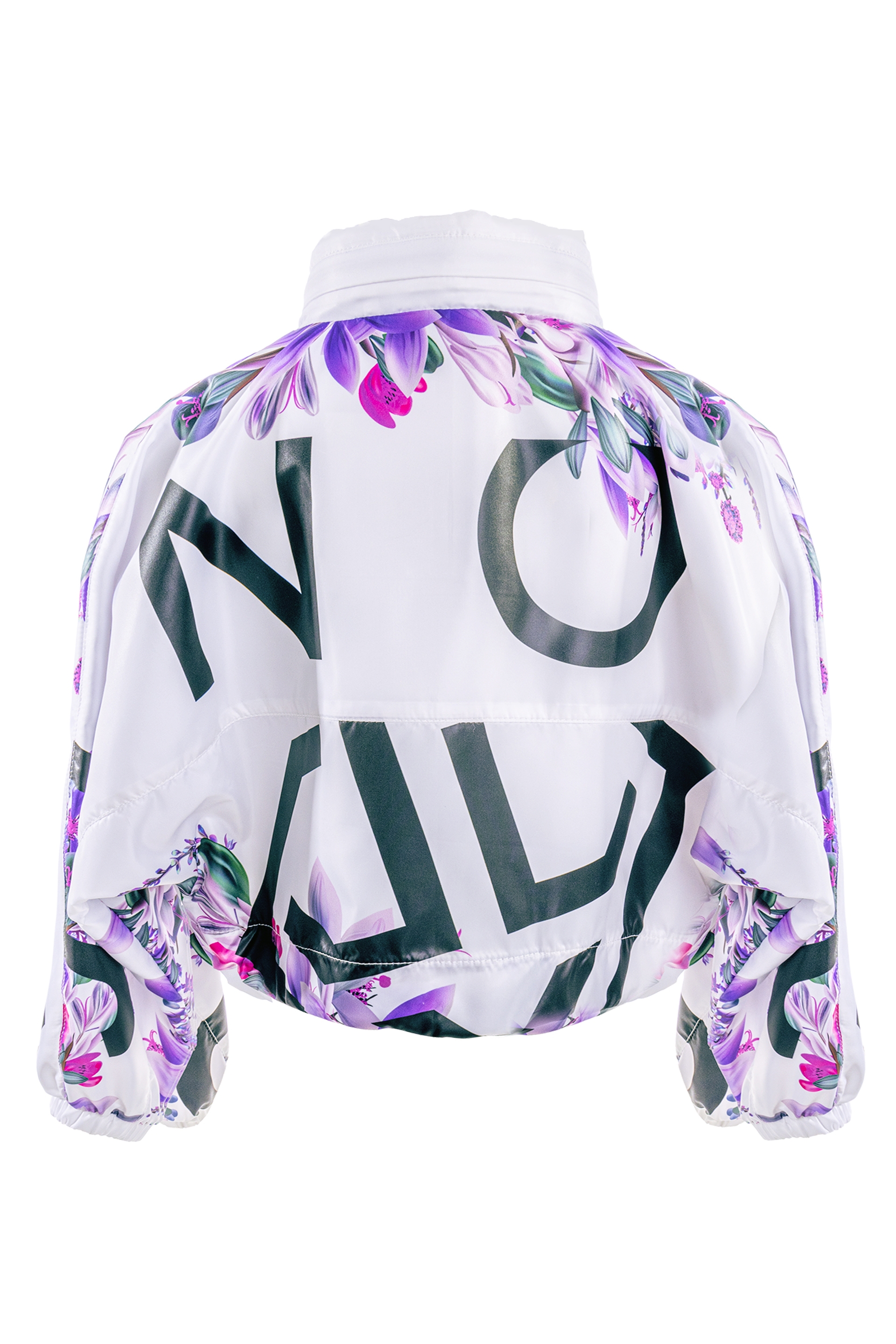Описание: Детско свободно яке тип ветровка с цветен принт, с качулка, която лесно се прибира в яката, със стягаща еластична връзка в подгъва, закопчава се с цип отпред.