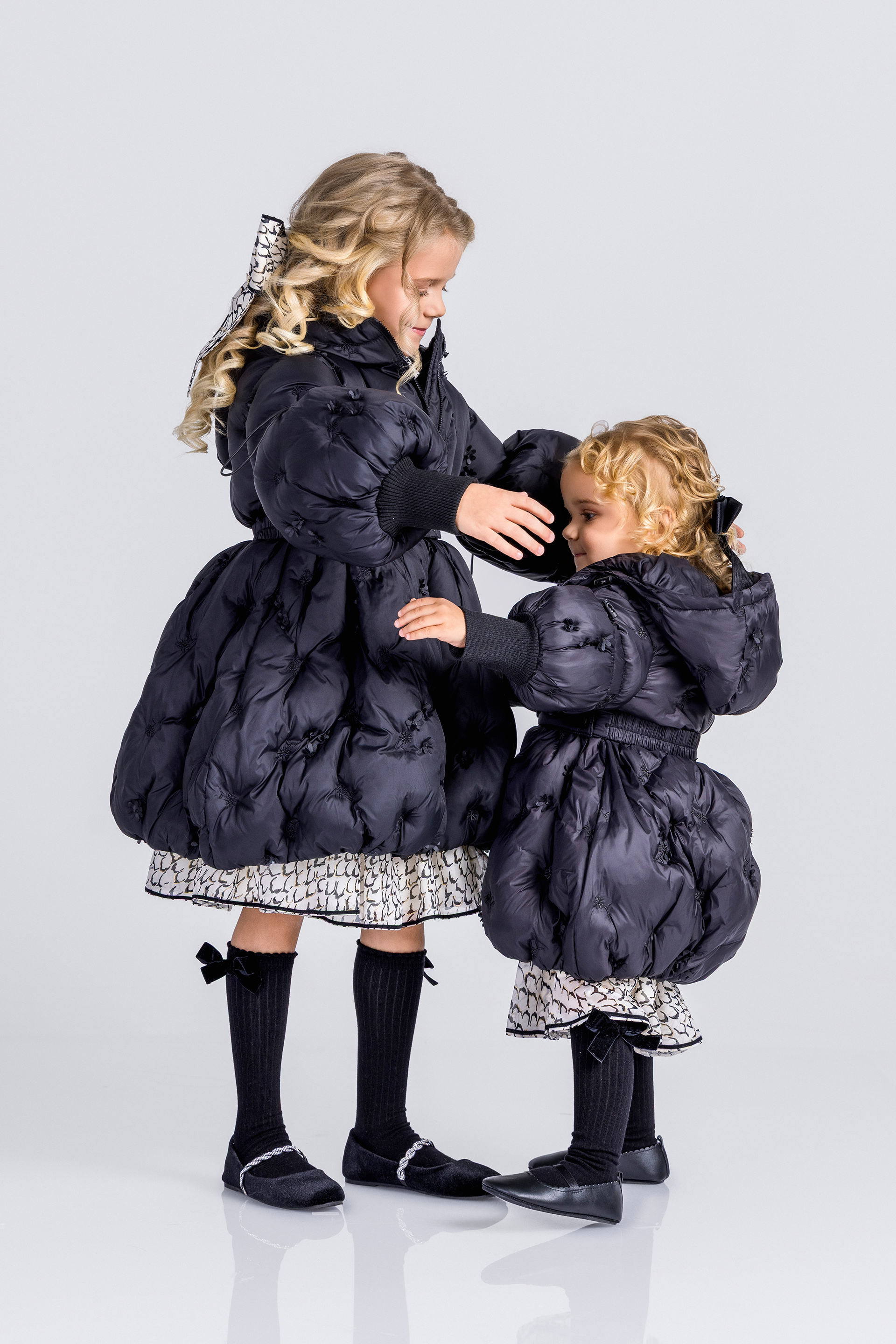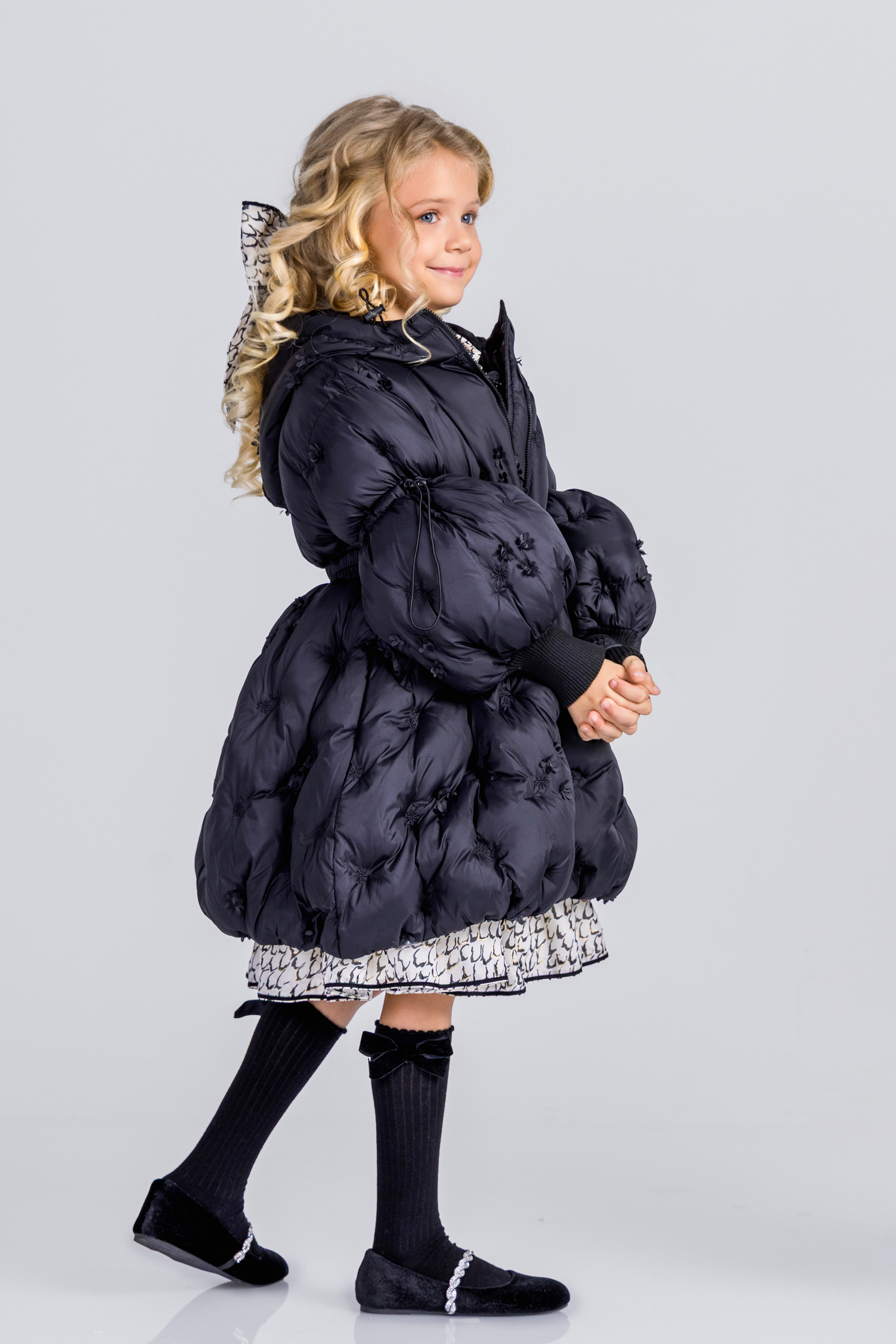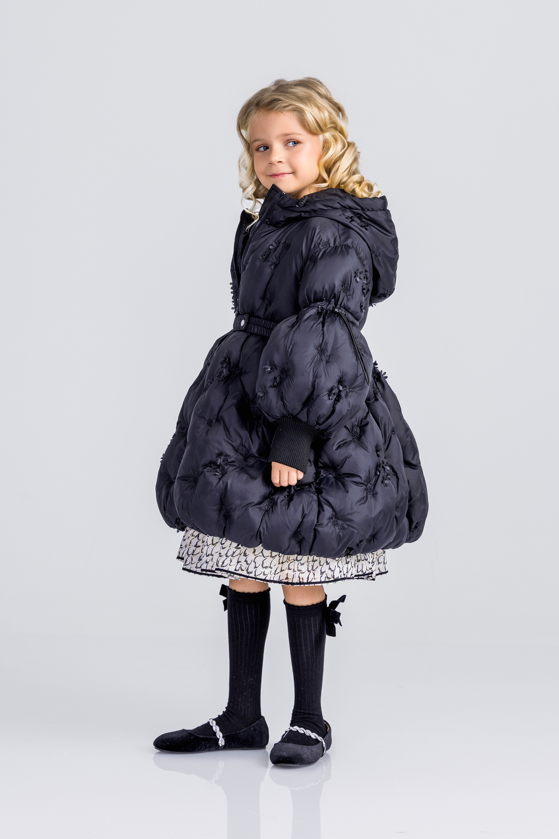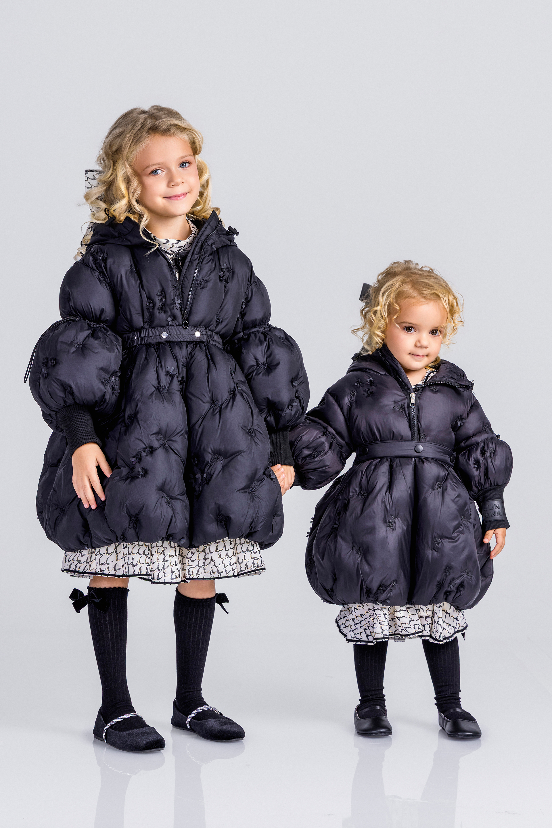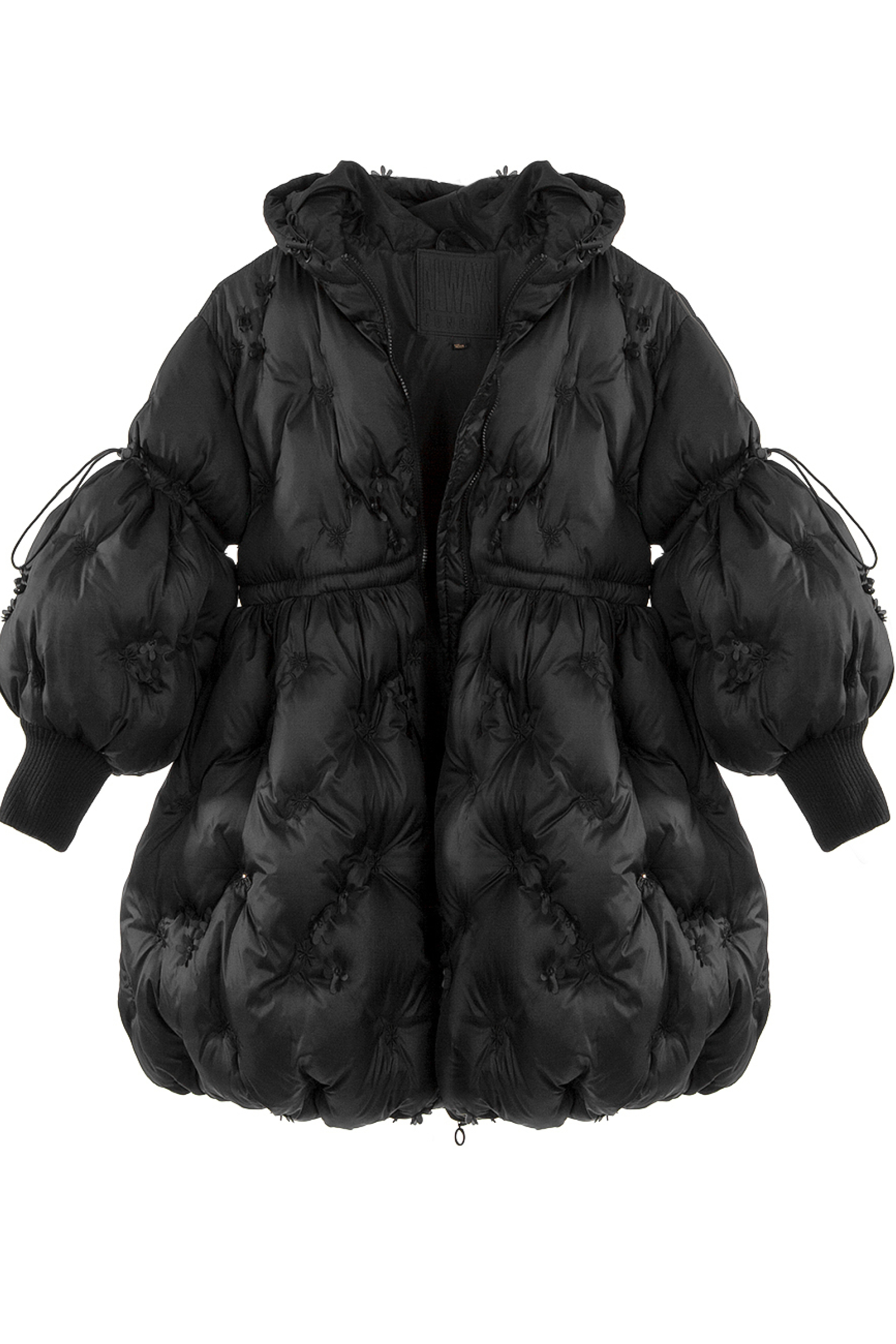 Описание: Това е луксозно черно пухено яке от Junona, проектирано с елегантна и игрива естетика. Якето е с сложна бродерия и деликатни 3D флорални орнаменти, които добавят текстура и чар. Дизайнът включва предно закопчаване с цип за практичност, съответстващ колан, който пристяга талията за ласкателен силует, и обемни бухнали ръкави, които добавят драматичен щрих. Логото на Junona е фино релефно върху оребрените маншети на ръкавите, което засилва привлекателността на марката. Това стилно палто е идеално за поддържане на топлината, като същевременно прави впечатление през по-студените сезони.