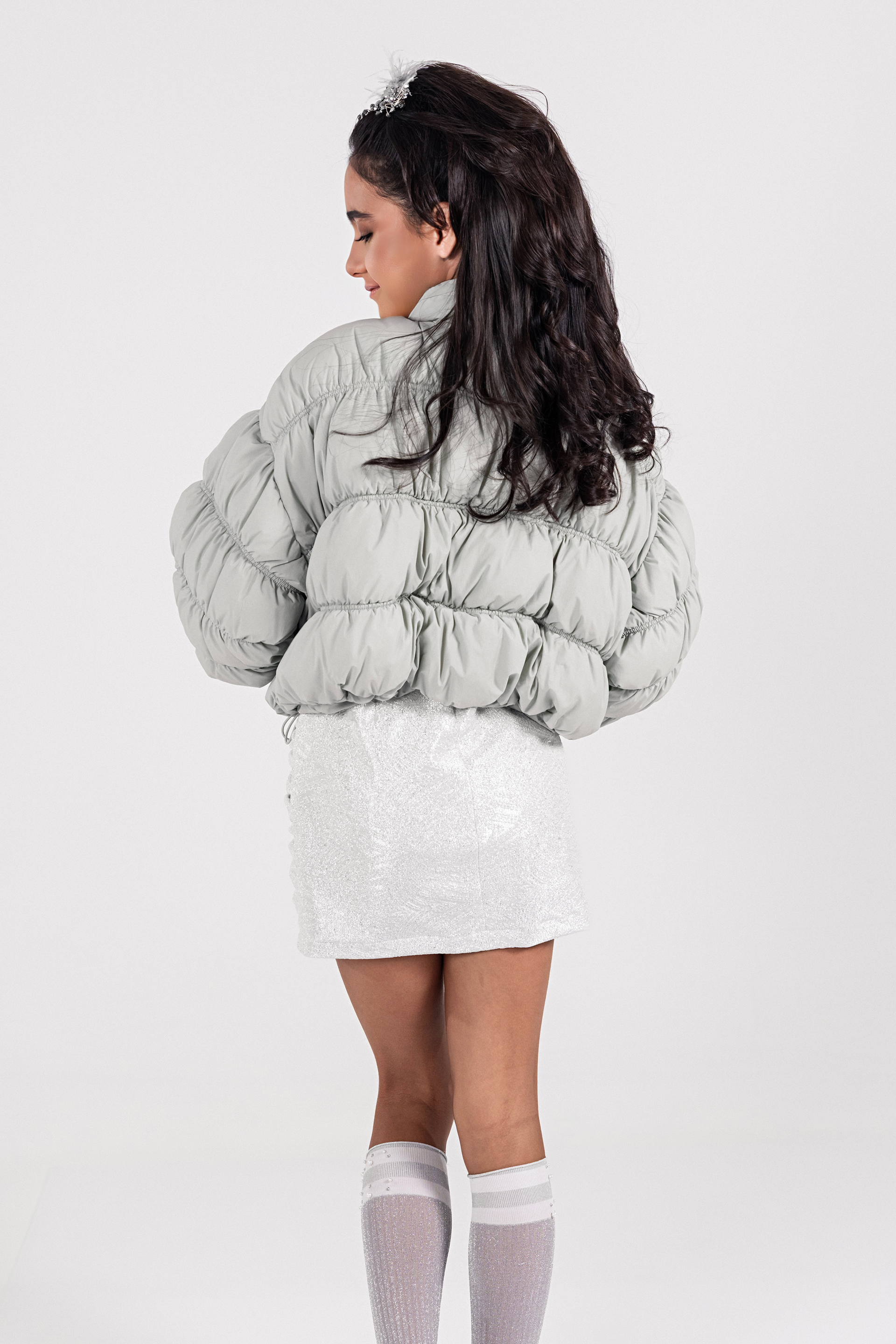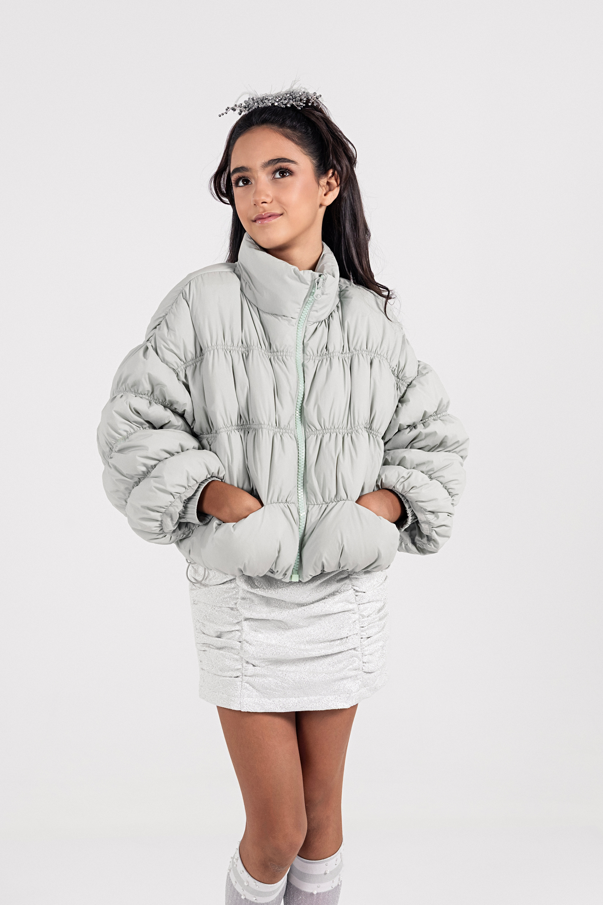 Описание: Junona внася уютен стил в зимните дни с това бледожълто пухено яке. Проектирано с мека подплата и копринена подплата, то е с дълги бухнали ръкави, предни джобове с цип и скрито закопчаване с цип отпред. Регулируемият еластичен подгъв добавя комфорт и модерен щрих. Леко, но топло, то е перфектната комбинация от практичност и чар - идеално за изява в хладни приключения.
