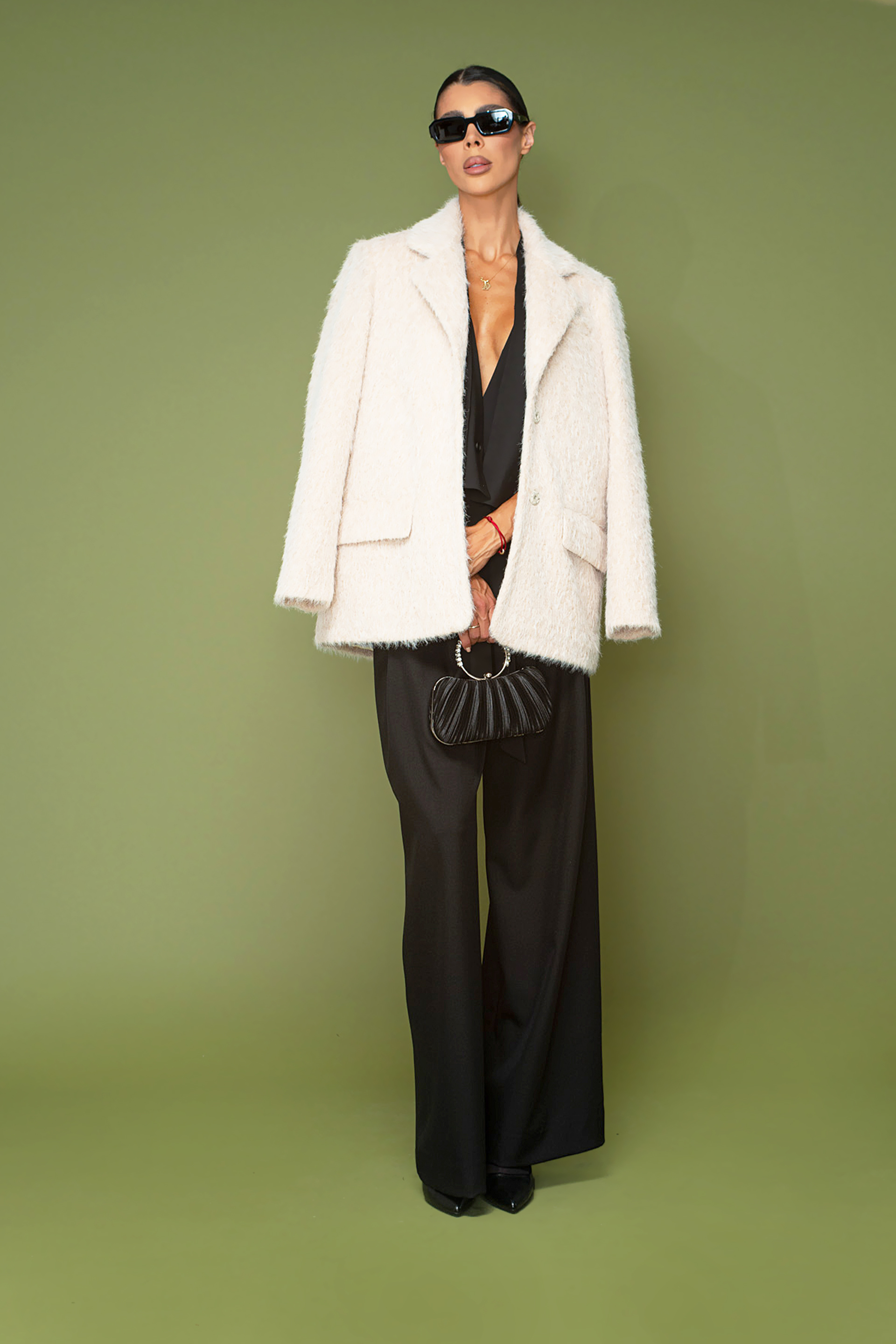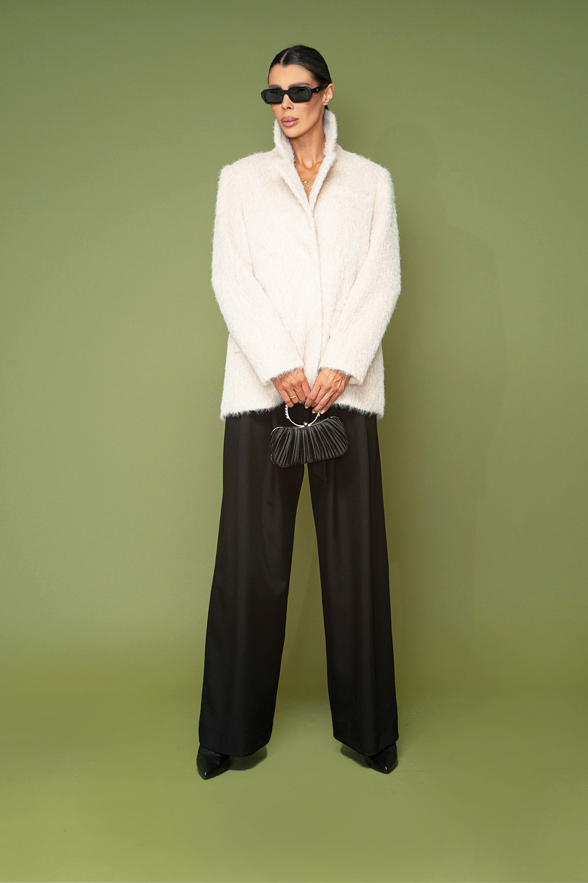 Описание: Късо палто с яка с ревер и дълъг ръкав. Предни джобове с капак. Вътрешна подплата в тон. Закопчаване отпред с копчета.