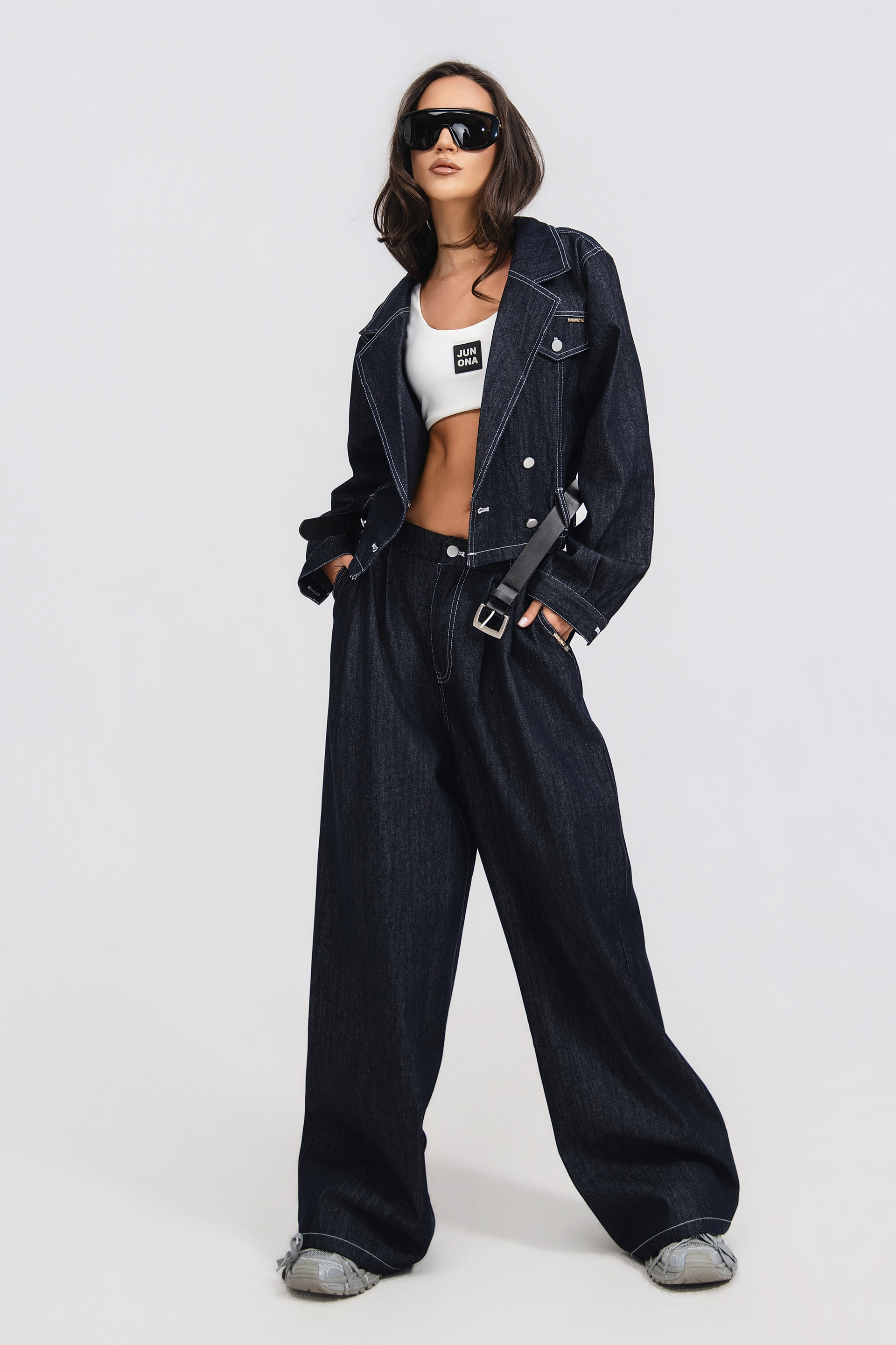 Описание: Свободно яке с ревер с назъбена яка и дълъг ръкав. Предни външни джобове с капак.. Колан с регулируем катарама. Закопчаване отпред с копчета.