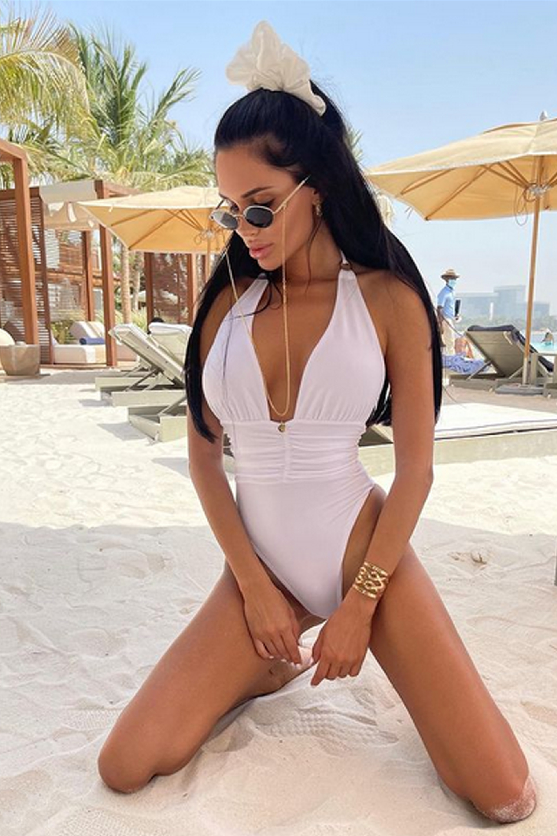 Описание: Цял бански костюм с по-плътно прилягане и оформящ ефект върху талията. Изработен от луксозна ликра, която идеално прилепва по тялото. Модел без подплънки.
